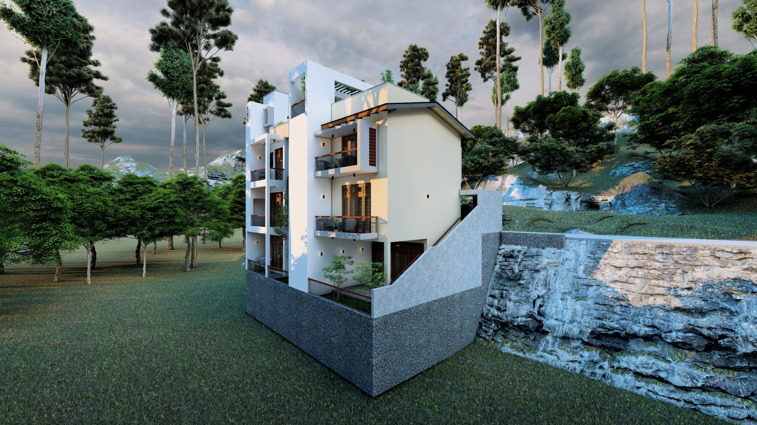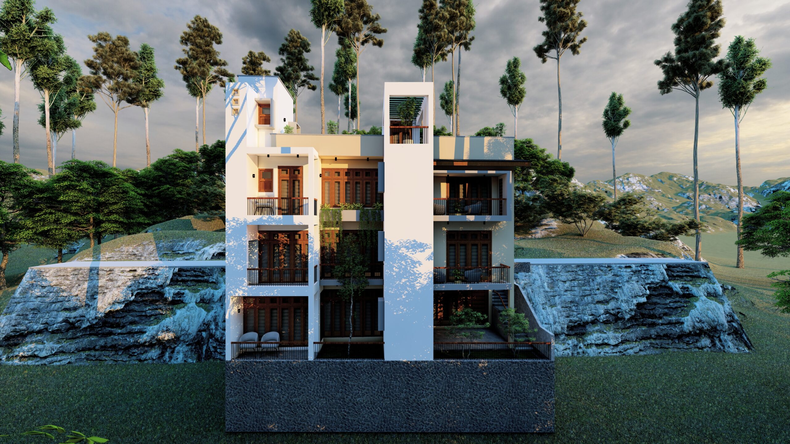 PROJECT INFORMATION PROJECT TITLE: Arshad House CLIENT NAME: Mr. Arshad LOCATION: Hemmathagama BUILDING TYPE: Personalized Residence LAND EXTENT: 7 Perch FLOORS: Lower Ground Floor with Two Storied BUILT AREA: 4550 Sq.Ft. STAGE: Construction