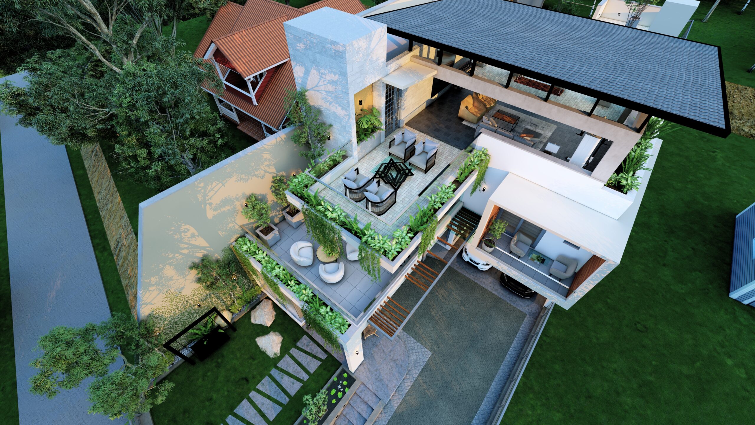 PROJECT INFORMATION PROJECT TITLE: Irfad House CLIENT NAME: Mr. Irfad LOCATION: Mawanella BUILDING TYPE: Personalized Residence LAND EXTENT: 21.4 Perch FLOORS: Two Storied BUILT AREA: 7320 Sq.Ft. STAGE: Construction