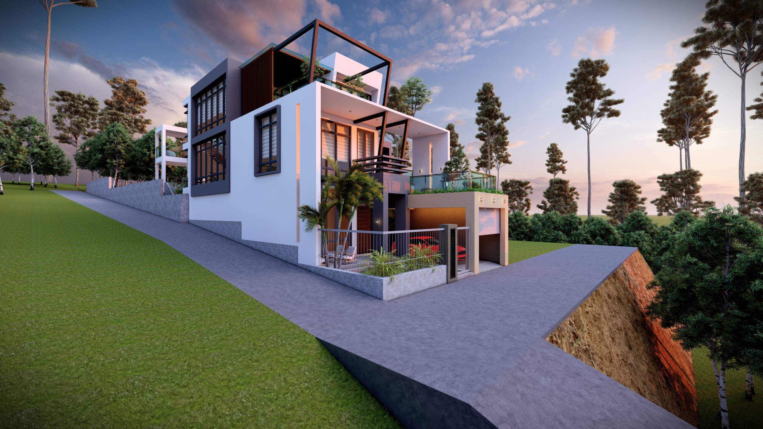 PROJECT INFORMATION PROJECT TITLE: Irshad House CLIENT NAME: Mr. Irshad LOCATION: Mawanella BUILDING TYPE: Personalized Residence LAND EXTENT: 30.6 Perch FLOORS: Two Storied With Roof Top Entertainment BUILT AREA: 5600 Sq.Ft. STAGE: Design Proposal